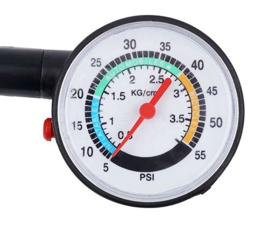 Wysokiej jakości analogowy ciśnieniomierz do kół o zakresie pomiaru aż do 55 PSI. Miernik ciśnienia opon to produkt niezbędny w zakładach wulkanizacyjnych, zwyczajnym warsztacie samochodowym ale potrzebny również przy codziennej eksploatacji auta. Zastosowanie analogowego wskaźnika i prostej konstrukcji urządzenia, zapewnia bardzo dokładny i pewny pomiar.