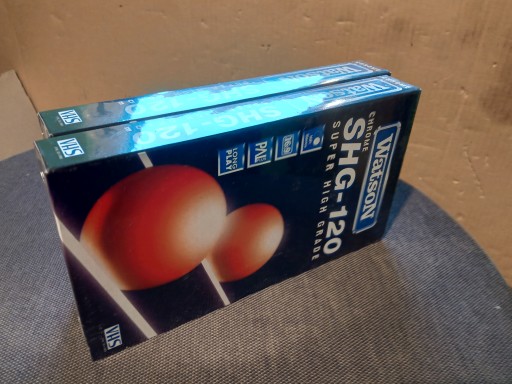 Komplet (para) dwóch nieużywanych zafoliowanych Kaset VHS : Watson SHG-120 .