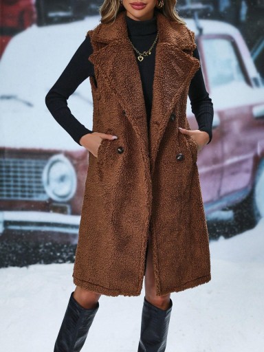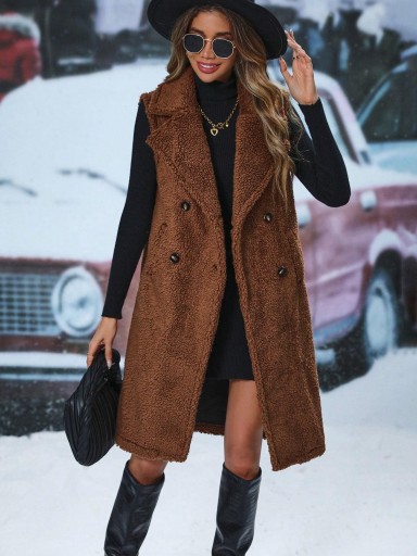 КОРИЧНЕВЫЙ ДВУХКОРИЧНЕВЫЙ ДЛИННО-КОРИЧНЕВЫЙ ПЛЮШОВЫЙ ЖИЛЕТ SHEIN 44