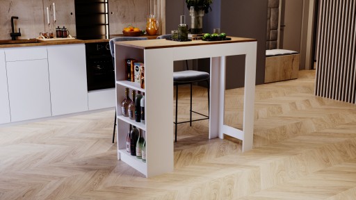 Meble barowe w domu? Dlaczego nie? Stylowy stolik barowy doskonale wpasuje się w wystrój kuchni nowoczesnej jak i jadalni, tworząc przy tym spójną całość. To idealne miejsce na poranną kawę czy szybki obiad. Cechuje go najwyższa jakość wykonania oraz niepowtarzalny wygląd dzięki zastosowaniu płyty meblowej klasy Premium.