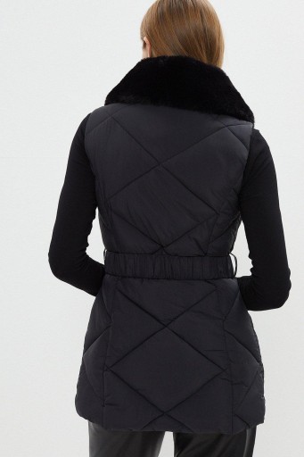 ЭЛЕГАНТНАЯ ЖИЛЕТКА ЧЕРНАЯ БЕЗ РУКАВОВ ПОЯС МЕХ ПОБЕРЕЖЬЕ 38