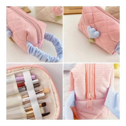 Organizer na kosmetyki / kosmetyczka podróżna Modny dodatek na podróż - rozkładana kosmetyczka z motywem tulipana! Wykonana z miękkiego, pikowanego materiału typu sztruks. Bardzo praktyczna i uniwersalna. Kosmetyczka w sam raz na dłuższe podróże czy wyjazdy - jest bardzo poręczna i pojemna, pomieści wszystkie niezbędne rzeczy. Posiada jedną komorę zasuwaną na zamek. Kosmetyczka jest bardzo pojemna.