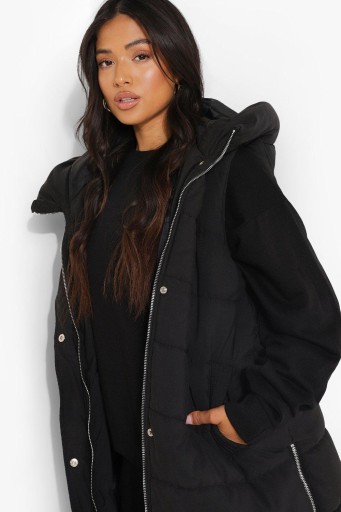 ЧЕРНЫЙ СТЕГАНЫЙ УТЕПЛЕННЫЙ ЖИЛЕТ С КАПЮШОНОМ BOOHOO M