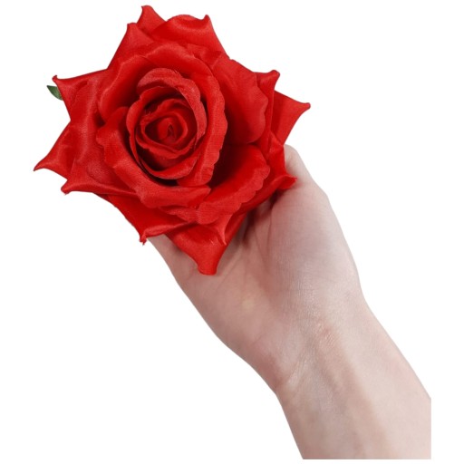 Główka wyrobowa rozwinięta róża bardzo dobrej jakości, idealna do stroików, bukietów i innych kompozycji kwiatowych, których jedynym ograniczeniem jest nasza wyobraźnia :-) liść matowy jakby materiałowy w dotyku. Zdjęcia przedstawiają realny produkt, który Państwo kupują na aukcji (proszę o zapoznanie się z wymiarami w opisie aukcji). Nadaje się do wnętrza i na zewnątrz.