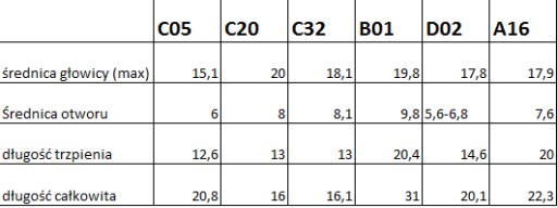Zestaw zawiera nity samochodowe różnego rodzaju.