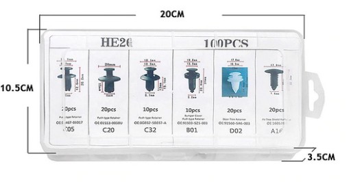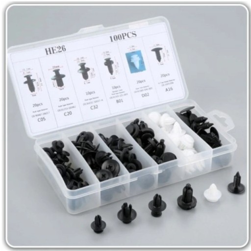 Plastikowe nity, kołki samochodowe Zestaw - 100szt
