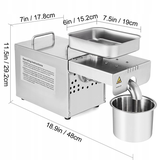 Prasa olejowa wykonana jest z silnika z czystej miedzi o mocy 460 W, co zapewnia wysoką wydajność. Poza tym hałas maszyny wynosi maksymalnie 60 db, co może cię trzymać z dala od hałasu.