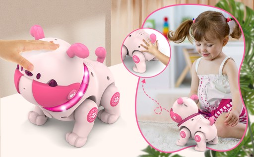 - Po dotknięciu określonych obszarów szczeniak-robot reaguje zabawnymi dźwiękami pierdzenia, które z pewnością wywołają chichot u dzieci, a nawet dorosłych.
