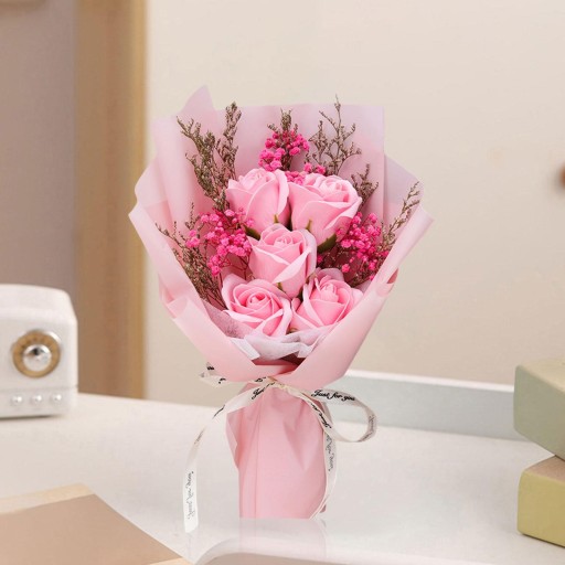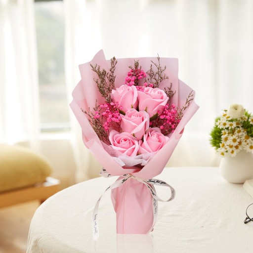 Bukiet kwiatów ze sztucznego mydła Realistyczny prezent na Walentynki na Dzień Matki Różowa róża