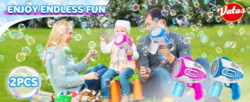 - ⭐Zestaw zabawek do tworzenia baniek VATOS zawiera 2 sztuki podświetlanej maszyny do baniek i 2 butelki roztworów bąbelkowych.