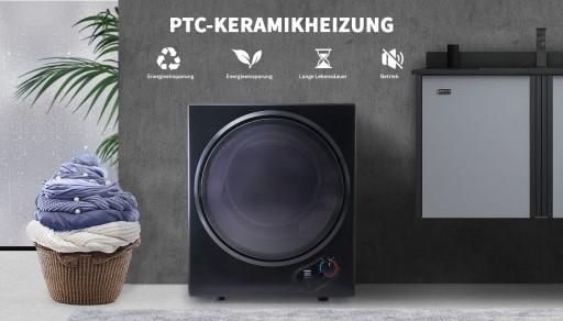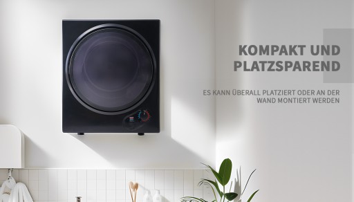 Minisuszarka bębnowa, 2,5 kg, do montażu na ścianie, łatwa w obsłudze, timer 200-minutowy, podwójny filtr, ogrzewanie ceramiczne PTC, cylinder ze stali nierdzewnej, zabezpieczenie przed przegrzaniem, odpowiednia temperatura suszenia 65°C