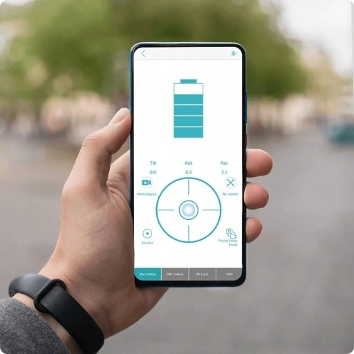 - Głowica 600 stopni: Gimbal posiada głowicę, która pozwala na obrót w zakresie aż 600 stopni. Dzięki temu bez problemu nakręcimy ujęcia panoramiczne i żaden element w kadrze 360 stopni nam nie umknie
