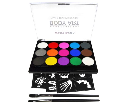 FARBY FARBKI DO MALOWANIA TWARZY i CIAŁA 15 KOL. ZMYWALNE DZIECI + SZABLONY