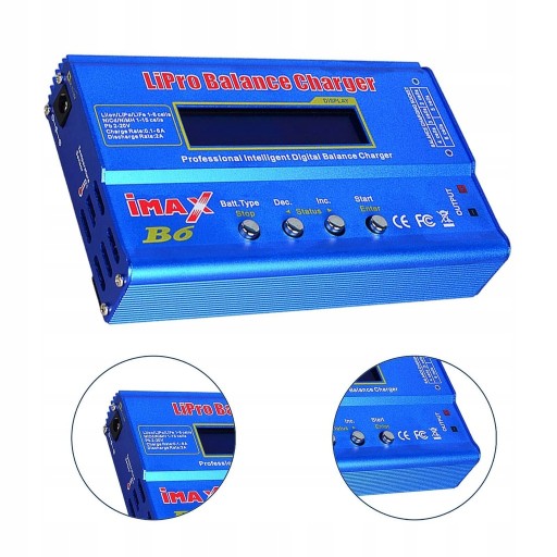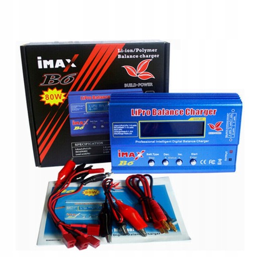 - Ładowarka iMax B6 zawiera niezależny stabilizator baterii litowej, który monitoruje i równoważy każdą baterię.
