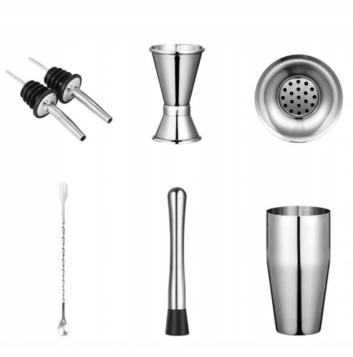 Zestaw do wytrząsania koktajli ma doskonały efekt lustra i wyjątkowy bambusowy stojak, to najlepszy wybór dla osób, które lubią mieszać składniki.