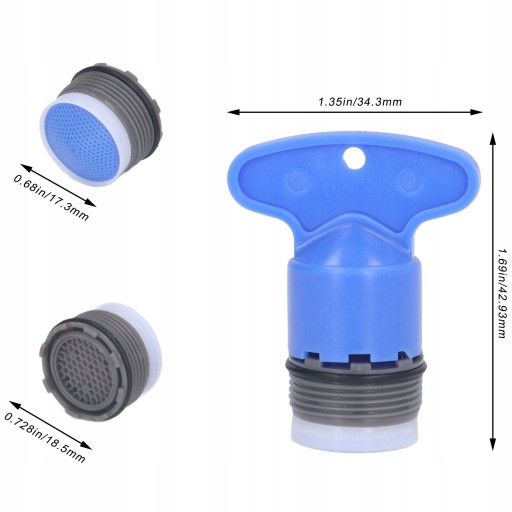 4. Materiał: filtr wkładany do kranu wykonany jest z wysokiej jakości tworzywa sztucznego, bardzo wytrzymałego, pasującego do żeńskiej wylewki o średnicy około 18.5mm/0.72 cala.