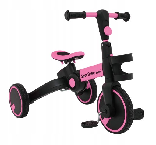 NOWOŚĆ BEMI-TRIKE 4w1 MODEL 2024 Z PROWADNIKIEM W KOLORZE RÓŻOWYM