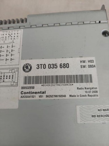 SKODA SUPERB II РАДИОНАВИГАЦИОННАЯ 3T0035680