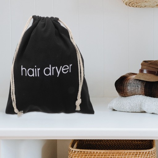 ✅Wykonane z wysokiej jakości materiału, bardzo odpornego na zużycie i trwałe. Przenośny rozmiar i nie zajmuje miejsca, nadaje się do użytku wewnątrz i na zewnątrz. Dzięki słowom „suszarka do włosów”, wygląda delikatnie i pięknie, może pomóc ci odróżnić przechowywane produkty.