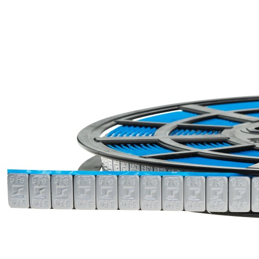 1200 pieces of adhesive weights for aluminum rims with a weight of 5g. The weights are wound on a practical spool (reel), which can be mounted within the wheel balancer stand.