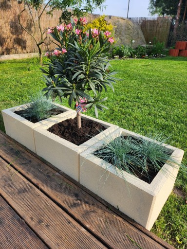 Ta nowoczesna, elegancka donica jest wykonana z betonu i idealnie nadaje się do eksponowania kwiatów czy roślin w ogrodzie, na terenie posesji, w parku, na osiedlu czy trawniku. Dzięki możliwości dowolnego układania gazonów możemy tworzyć ciekawe aranżacje.