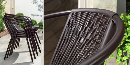 Obicie wykonane z polirattanu pozwala na swobodną cyrkulację powietrza, co jest bardzo istotne szczególnie w cieplejsze dni. Dzięki temu siedzenie na krześle jest przyjemne, a Ty możesz cieszyć się chłodem nawet podczas upalnych dni.