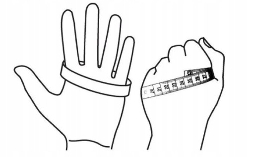 Obwód dłoni 15 cm. Pomiaru obwodu dłoni należy dokonać w najszerszym miejscu nad nadgarstkiem (bez kciuka). Obwód dotyczy ok. 3-8 lat dziecka.