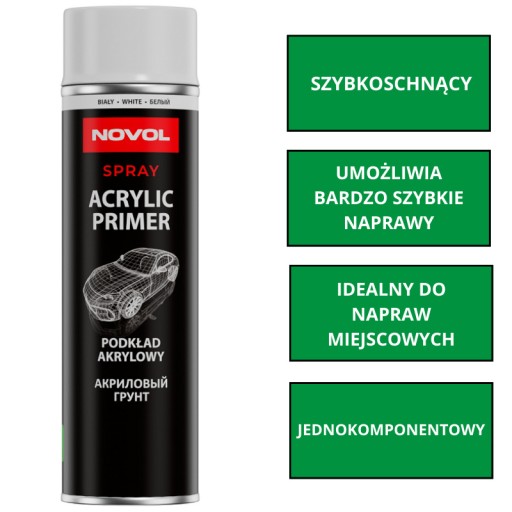 Jednokomponentowy, wypełniający podkład akrylowy przeznaczony przede wszystkim do wyrównania powierzchni szpachlowanych i starych powłok lakierniczych. Idealny do napraw miejscowych. Główną zaletą tego podkładu jest bardzo krótki czas wysychania umożliwiający bardzo szybkie naprawy. Produkt posiada dyszę FAN, dającą strumień natrysku zbliżony właściwościami aplikacyjnymi do dyszy pistoletu konwencjonalnego.