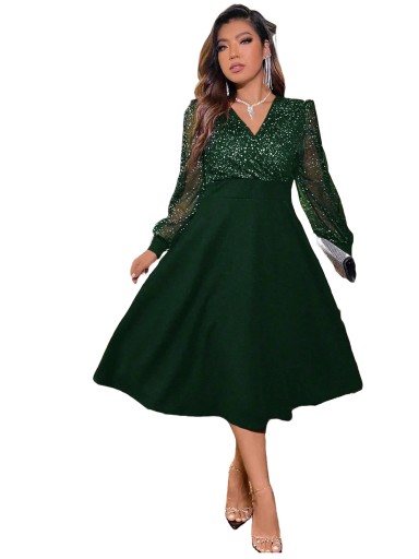ZJAWISKOWA SUKIENKA DAMSKA WIECZOROWA LUSKUSOWA BŁYSZCZĄCA MIDI