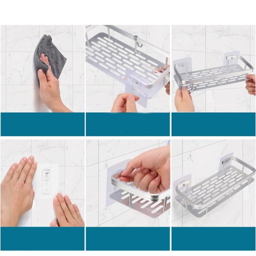 ✔ Uwaga: Przyklej półkę TYLKO do gładkich twardych powierzchni. Nie przyklejaj półki na pomalowanych ścianach lub tapetach, ponieważ usunie ona farbę lub tapety.