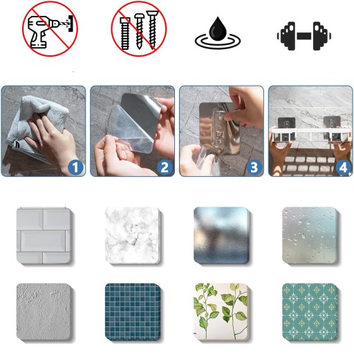 ✔ Prosta instalacja. Samoprzylepna, bez wiercenia, duża siła trzymania. Nie uszkadza ściany, nie pozostawia śladów.
