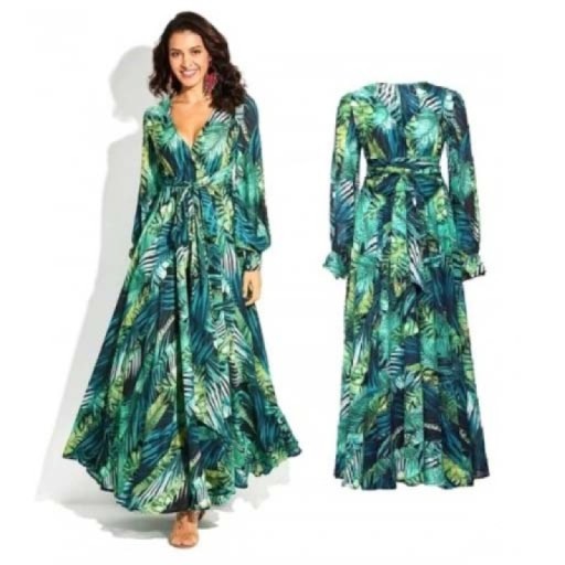 ДЛИННОЕ ЗЕЛЕНОЕ ПЛАТЬЕ ДЖУНГЛИ С ЛИСТЬЯМИ