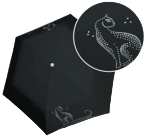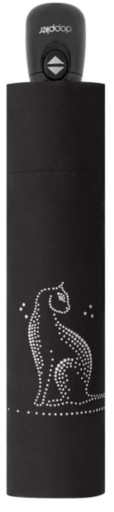 Doppler Art Collection SPARKLING CAT to parasol z najnowszej serii marki Doppler z artystycznie stylizowanym wzorem kota powstałym poprzez naniesienie błyszczących punktow na tkaninę..