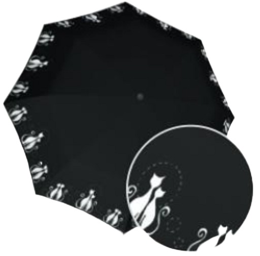 Doppler Art Collection SPARKLING CAT to parasol z najnowszej serii marki Doppler z artystycznie stylizowanym wzorem kota powstałym poprzez naniesienie błyszczących punktow na tkaninę..