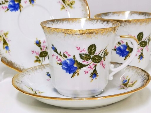 004 Блюдце для чашки 15 Позолоченная Голубая Роза КАМЕЛИЯ МАЛЬЦЕР ФАРФОР