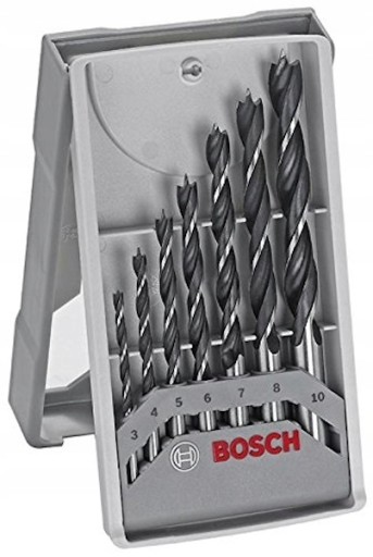 - 7-częściowy zestaw wierteł do drewna (3/4/5/6/7/8/10 mm),