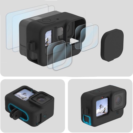Etui Ochronne Silikonowe Zestaw Folii Hartowanych Do Gopro Hero 12 11 10 9