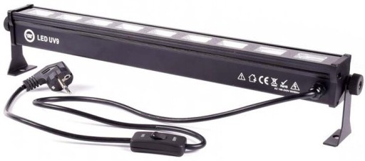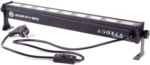 LIGHT4ME LED Bar UV 9 + White składa się z 9 diod LED, które emitują światło ultrafioletowe i białe. Dzięki temu połączeniu lampa tworzy niesamowite efekty świetlne. O ile światło białe jest bardzo dobrze widoczne w każdych warunkach, o tyle ultrafiolet jest pasmem niewidocznym dla ludzkiego oka. Warto jednak podkreślić, że światło UV doskonale komponuje się z barwą niektórych ubrań (tak jest np. z bielą), zyskując właściwości fluorescencyjne.