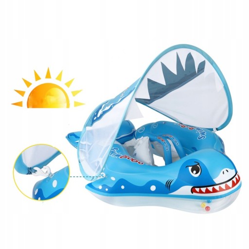 REGULOWANY I ODPINANY BALDACHIM: ta boja do pływania dla dzieci z rekinami ma regulowaną i zdejmowaną konstrukcję, a baldachim można ustawić na pełne lub na pół zakrycie, aby zapobiec oparzeniu wrażliwej skóry dziecka. Kiedy grasz w pochmurny dzień lub wieczorem, możesz zdjąć baldachim.