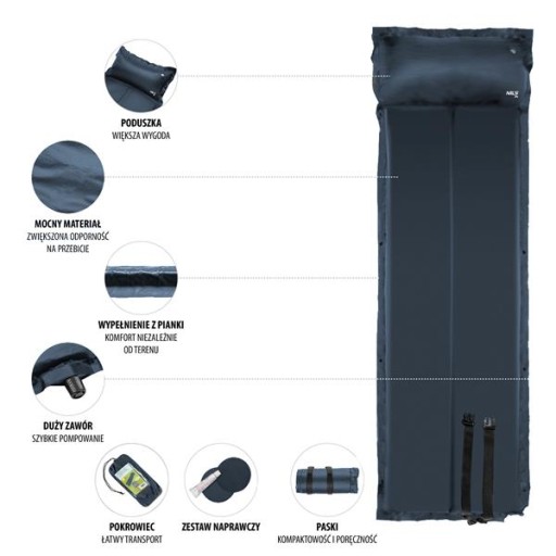 ✨Mata samopompująca z poduszką NC4008 to świetne rozwiązanie dla każdego miłośnika spędzania czasu podczas campingu, pod namiotem czy na plaży!✨