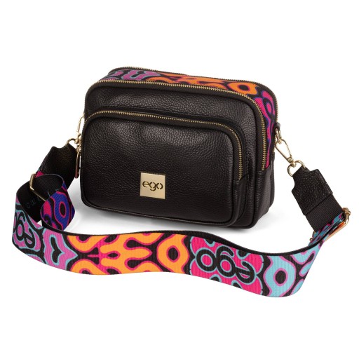 ЧЕРНАЯ ЖЕНСКАЯ СУМКА EGO, НАТУРАЛЬНАЯ КОЖА, С РЕМЕНЕМ НА ПЛЕЧЕ
