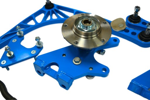 - Zwrotnice przystosowane do wzmocnionych końcówek drążków od BMW E46.