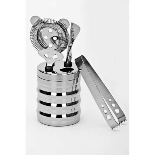 - Wysokiej jakości komplet przyborów barowych wykonanych ze stali nierdzewnej.