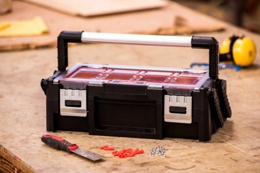 - Przejrzysta pokrywa umożliwia szybkie znalezienie potrzebnego narzędzia bez konieczności otwierania całej skrzynki.