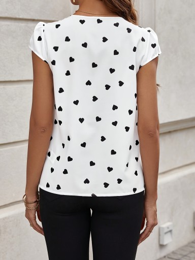 MODNA BLUZKA DAMSKA ELEGANCKA KRÓTKI RĘKAW Z NADRUKIEM LETNIA
