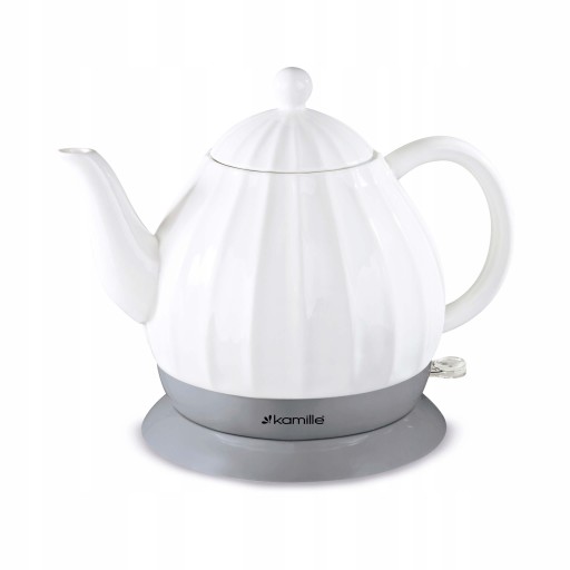 Stylowy czajnik bezprzewodowy wykonany z wysokiej jakości ceramiki. Ponadczasowy kształt i funkcjonalność sprawdzą się w każdej kuchni. Wyposażony w wygodny, wbudowany element grzewczy. Łatwe stawianie czajnika na obrotowej podstawie. Nienagrzewająca się rączka zapewnia wygodę i wysoki komfort użytkowania. Posiada automatyczny wyłącznik, dzięki niemu nie musisz kontrolować momentu zagotowania się wody, czajnik sam się wyłączy. Solidna, mocna konstrukcja gwarantuje że sprzęt będzie dobrze służył przez długi czas.