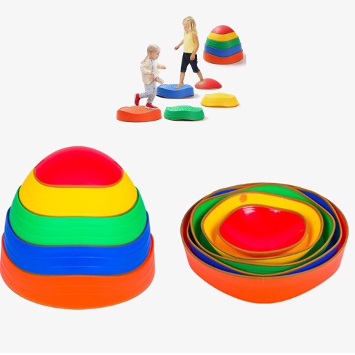 👶W czasie zabawy kolorowy zestaw kamieni balansowych zapewnia dzieciom wiele gier edukacyjnych, takich jak tory przeszkód, liczenie, układanie, rozpoznawanie kolorów, trening równowagi.