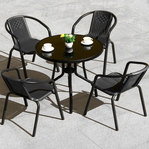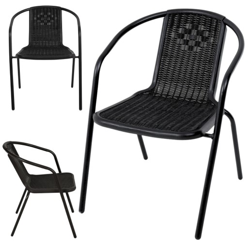 УДОБНЫЙ ЧЕРНЫЙ МЕТАЛЛИЧЕСКИЙ САДОВЫЙ СТУЛ ДЛЯ ТЕРРАСЫ, БАЛКОНА, ПЛАСТИКОВОЕ КРЕСЛО