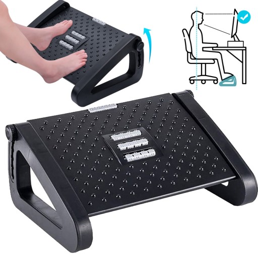 Regulowany podnóżek zapewnia przyjemne wrażenia podczas pracy przez cały dzień. Masuje stopy, zmniejsza stres i wspomaga krążenie krwi.