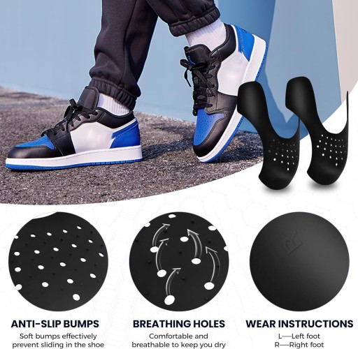 Great Choice: Shoe crease protectors are very cost-effective! Our crease protectors extend the life of your expensive sneakers, keeping your shoes as good as new. High-grade Crease Protector: Lightweight and durable, anti-crease device protects your shoes from creases, takes good care of your feet, and is super comfortable without feeling it at all. More Convenient: 4 pairs per pack, fully compatible with most sneakers, our crease guards are ergonomically designed with auxiliary cutting lines for free cutting to the desired size. Exquisite Details: crease protectors for shoes surface particles are designed to help it hold in place and not move. Ventilation holes keep the shoe dry and breathable, not stuffy. Kindly Tips of Shoe Crease Protector: It is recommended that the shoes are half a size larger to avoid discomfort. We offer 99% risk-free satisfaction or an immediate refund. We are always at your service. Product Description